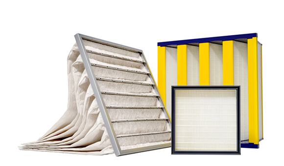 Systémy HVAC často využívají několik tříd filtrace s různou účinností a konfigurací filtrů. Vzduchové filtre, jako jsou Kapsová filtrační vložka, filtrační rouna, Panelová filtrační vložka a Kazetová filtrační vložka, se používají pro hrubou a jemnou filtraci prachu. Speciální vzduchové filtry, jako například HEPA nebo ULPA filtr, mohou ze vzduchu odfiltrovat bakterie a viry - což je rozhodující faktor v nemocnicích nebo jiných prostředích s vysokým výskytem virů a bakterií. Filtrační vložky s aktivním uhlím vážou nepříjemné pachy a znečišťující látky, jako jsou těkavé organické látky, které vznikají při každodenní výrobě. Tyto vzduchové filtry zajišťují lepší vzduch na Letiště nebo i v restauracích a komerčních kuchyních.